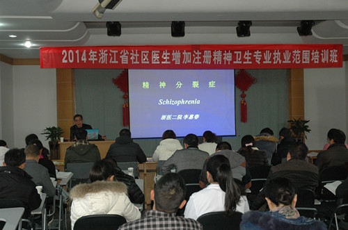 1月14日,中国医师协会精神科医师分会委员、浙江省精神科学会副主任委员、浙江大学医学院附属第二医院精神科主任李惠春教授来我院,为来自九县一市的共40余名基层社区医生授课。