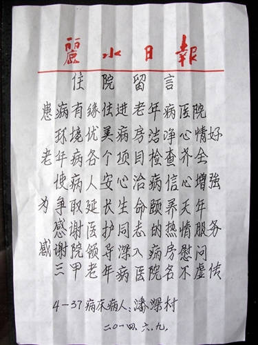 四病区患者感谢信
