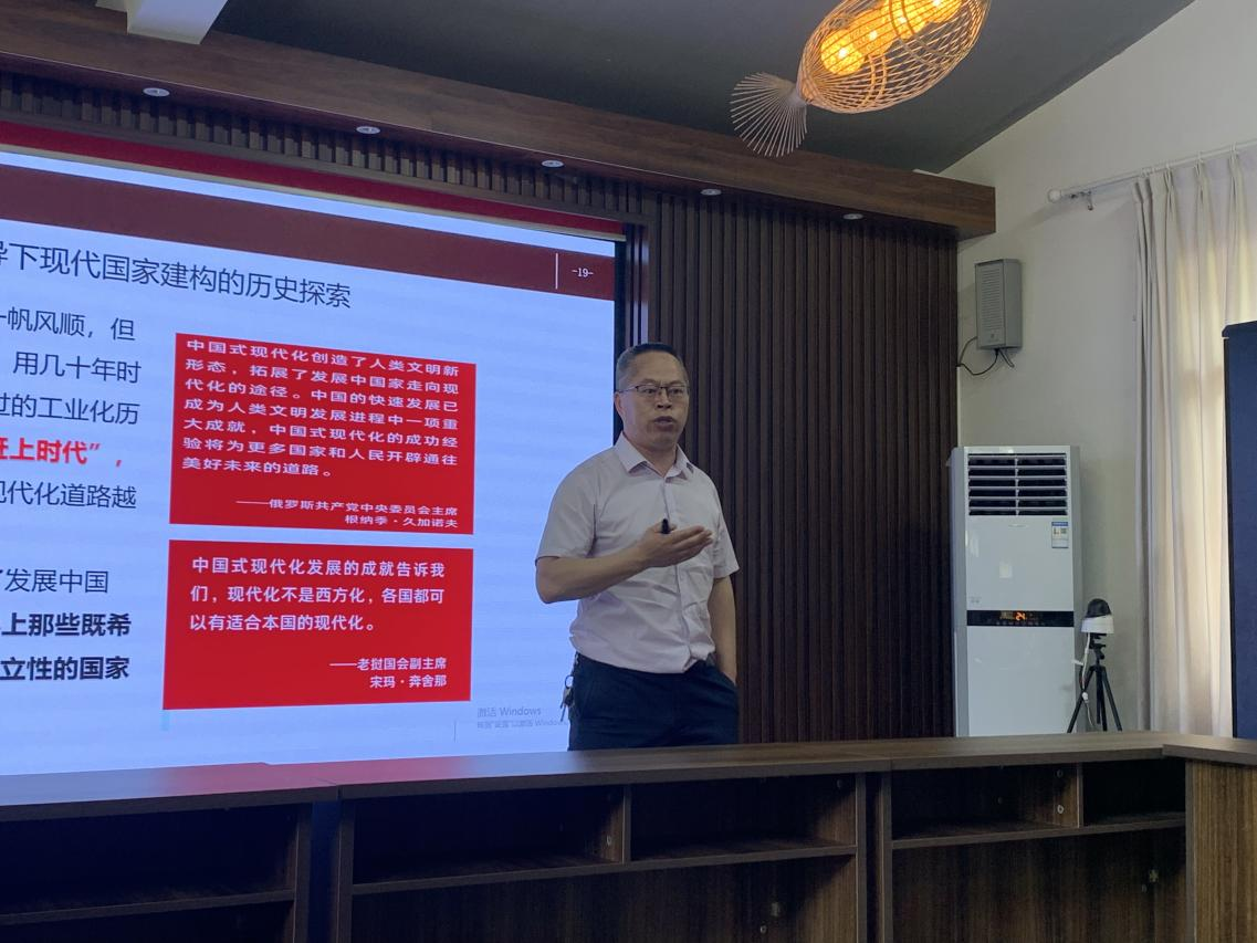 特邀丽水学院姚建伟教授上党课《从苦难到辉煌,中国共产党人的光荣与梦想》,从百年沉沦的历史,讲到中国式现代化的重大意义及中国式现代化的丽水探索,让党员们受益匪浅。
