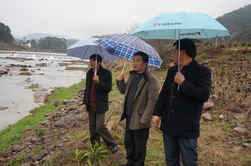 “五水共治,保护母亲河”,为认真践行党的群众路线全面推进“治水”工作,日前丽水市第二人民医院院长王东波,书记吴绍长带领两名青年干部冒雨分赴联系点缙云县壶镇镇下潜村和上东岸村开展摸底走访。