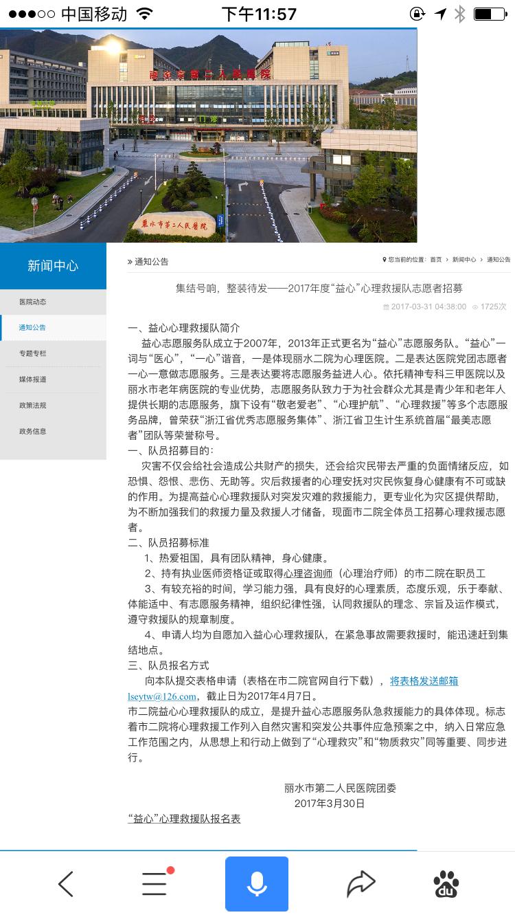 五、招募方式:有意向志愿者可关注并扫描丽水二院团委微信公众平台,并填写志愿者报名登记表,发送邮箱至:419233749@qq.com,咨询、报名电话:18767857477(谢先生)或13600600011(赵女士)。
