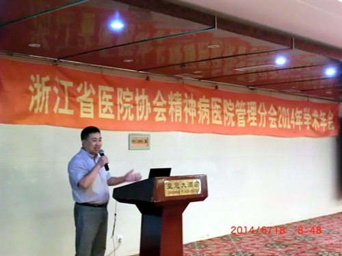 6月17日至18日,浙江省医院协会精神病医院管理分会2014年学术年会在湖州召开。我院7篇关于医院管理、公立医院改革和医患沟通的论文参会,吴绍长书记在大会上作题为《丽水市精神病医院功能定位的调查思考》的报告。
