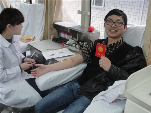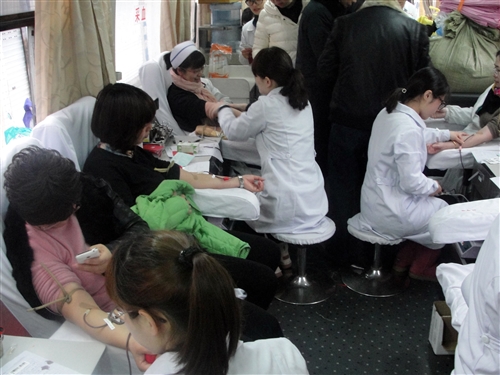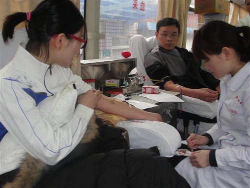 3月6日上午,我院组织无偿献血活动。上午8时许,前来献血的医务人员络绎不绝,在献血车前排起了长队,虽然还下着大雨,天气湿冷,却丝毫没有影响大家献血的热情。大家在工作人员的引导下进行信息登记、验血等一系列献血准备工作,秩序井然。