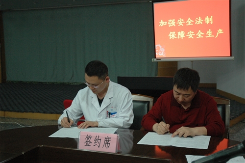 会上,吴绍长院长与各科室负责人签署《2015年医院科室安全生产责任书》。