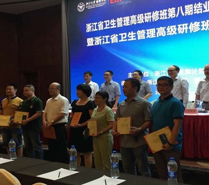 论坛研讨会上吴绍长院长作《创新工作方法,进一步改善医疗服务》PPT汇报演说,并荣获浙江省卫生管理高级研修班第二届紫金论坛二等奖。梁涌副院长荣获浙江省卫生管理高级研修班第八期“优秀学员”。