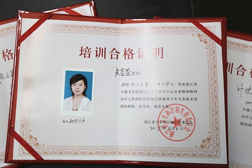 今年年初,市卫计委在省卫计委的指导下联合省精卫办、市精卫办和丽水市二院共同举办《浙江省社区医生增加注册精神卫生专业执业范围培训班》。31名社区医生经过为期一个月的理论培训和临床实践后参加毕业考核,成为全省首批增加注册精神卫生执业资格范围医生。