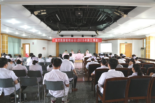 9月16日,我院在多功能厅召开第三季度医疗质量管理会议。会议由质控科科长主持,吴绍长院长、夏朝云副院长、赵龙友副院长,全院临床医生、护士长及助理100余人参加会议。