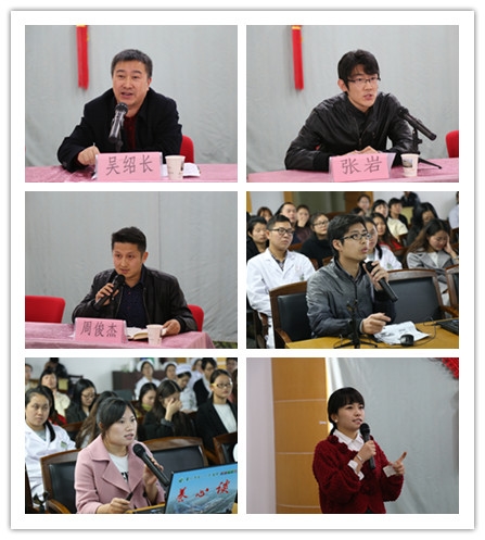 会议首先由新志愿者代表上台表态发言,畅谈志愿服务体会。医院团委书记张岩作“益心”志愿服务工作汇报,总结回顾了2015年医院“益心”志愿服务活动开展情况及所获荣誉。会议还以PPT形式对“敬老爱老”、“梦想行动”、“心灵护航”、“五水共治”等特色志愿服务项目进行成果展示。团委副书记周俊杰汇报下一步工作思路。
