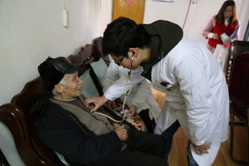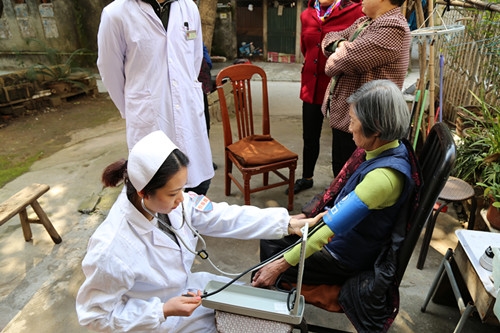 志愿者们除了进行常规性的血压、血糖监测,心肺听诊外,还进一步了解老人的情绪及心理状况,提醒老人做好身心平衡。为老人送上《老年卫生、心理卫生知识手册》,向他们传递健康养老的新理念,受到社区老人们的欢迎。
