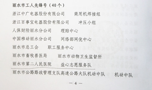 4月20日,丽水市总工会发文(丽总工发〔2016〕30号)表彰丽水市工人先锋号,丽水市二院“益心”志愿服务队荣列榜单,再次唱响“益心”志愿服务新篇章。