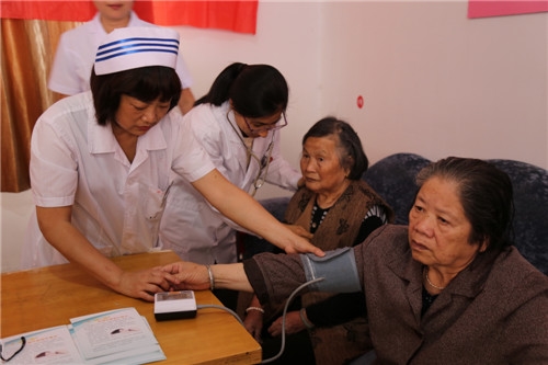 值“5.12”国际护士节到来之际,我院护理部联合团委“益心”志愿者共同开展主题为“天使在身边”送温暖、献爱心活动。副院长梅映台携老年病专家、护士代表、益心志愿者到山水养老院为老人们送医义诊。