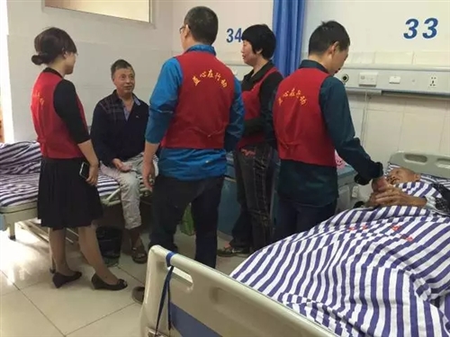 “益心”心理救援队队员到达遂昌医院慰问还在住院的受灾村民。了解心理恢复情况,并及时提供针对性的心理援助。