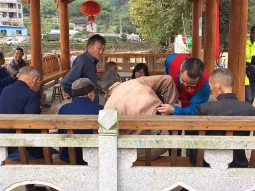 10月10日,“益心”救援队队员们走访了苏村的受灾群众,并给他们做心理评估。