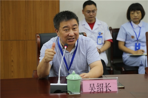 吴院长对考察团的到来表示欢迎,首先简要介绍了医院概况、办院思路、品牌建设及未来宏图的规划,紧接着吴院长重点介绍了医院近年来先后成为贺林院士工作站、上海交通大学生命科学研究院附属医院、济宁医学院教学医院以及人才培养、学科建设等方面工作。