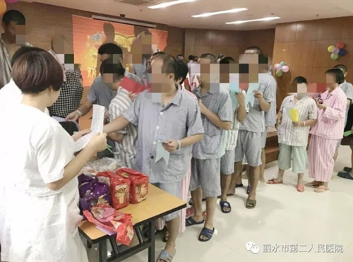 据宣护士长介绍,此次幸运大抽奖的奖品有毛巾,牙膏,雨伞,沐浴露等,特奖品是一床棉被。 由于康复科住院病人有的存在肢体功能障碍、有的存在吞咽功能障碍,所以他们没有发月饼或食物,也没有进行游戏活动;而是采用这种“幸运大抽奖,人人有奖”的形式,给每位住院病人发放生活必需品,让他们感受到节日的欢乐氛围,一扫疾病的阴霾,人人都是幸运者。 做一家有温度的医院是我们丽水二院人共同的目标,做一支有温度的队伍,让病人们在医院里不仅能接受专业的治疗,还能享受到温暖,是我们不懈的追求。