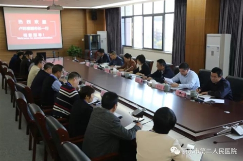 今日下午,丽水市副市长卢彩柳、副秘书长吴郁郁、市卫生计生委主任周一红等一行到丽水市二院调研医院建设发展情况,医院书记院长吴绍长等院领导、各职能科室负责人陪同调研并参加座谈会。