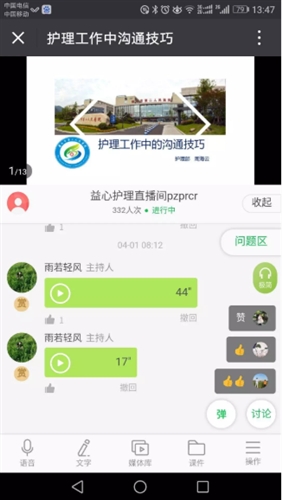 以往的培训都是利用中午或晚上护士下班之余休息时间进行,护士夜班下还等在医院或从家中赶到单位参加培训,占用了护士的休息时间不说,路上的安全也让人担忧。为了学休两不误,护理部从护士角度考虑,把课堂开到了网上。护理部周秀娟主任说:“线上课程开设受欢迎程度是意料之外的,它不仅能让培训覆盖面更广,还包含着医院对护士暖暖的爱。看着微信群里满屏的赞,心里很激动。护士在线学习完课程后扫码签到,后台就能统计学习的参与率,这也大大提升了护理部的工作效率。”