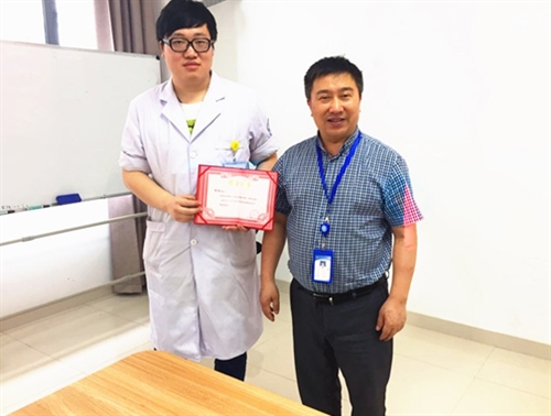 济宁医学院实习生谭镇荣获“丽水市第二人民医院优秀实习生”荣誉称号,由吴院长亲自颁发荣誉证书。
