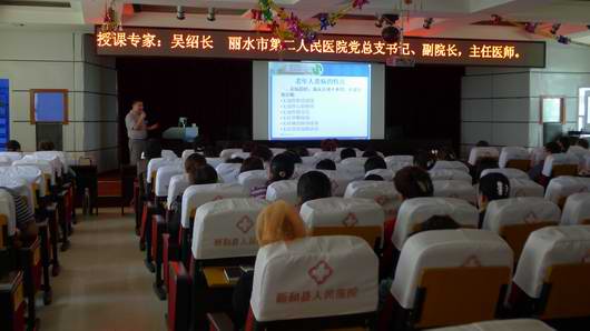 丽水医疗专家分别为新和县人民医院、维吾尔医医院、妇幼保健站等医护人员进行讲座。丽水市中心医院副院长、心内科主任曾春来、丽水市第二人民医院党总支书记、副院长吴绍长、丽水市中医院副院长陈礼平、丽水市妇幼保健院儿科主任戴巧群分别作了题为《心血管病危重症的抢救与心脏病的介入治疗技术新进展》、《老年人患病特点及诊治进展》、《远离“三高”预防心脑血管疾病》、《新生儿窒息复苏技术》的讲座,讲座生动具体、针对性强,受到了新和县各家医院医护人员的欢迎与好评。