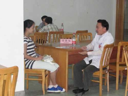 在丽水学院计算机学院义诊分会场,姜乾金教授,张载福、傅素芬、夏朝云、曾长佑主任医师,林美琴心理咨询师等专家为前来咨询的学院学生一一解答疑云,化解心结,一位女生刚来到心理咨询师林美琴面前时是心事重重,咨询后离开时脸上露出了笑容。