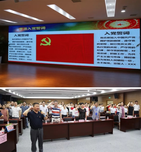 在吴书记的带领下,全体党员面向党旗,重温入党誓词。