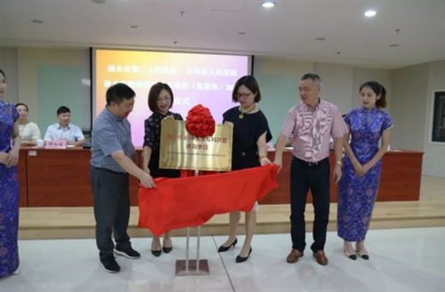 会上,丽水市第二人民医院和云和县人民医院签订了加盟协议书,市卫计委副主任林莉、云和县人民政府副县长雷绍丽、丽水市二院院长吴绍长及云和县卫计局局长高洪波共同为云和县人民医院加盟丽水市精神医学专科联盟揭牌。