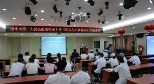 揭牌仪式后,丽水市第二人民医院精神科主任朱桂东开展了《压力与心理健康》专题讲座,为到场嘉宾和云和医院职工呈现了一场正确认识自我、有效调节心灵的精神盛宴。