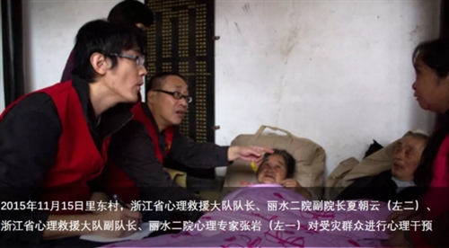2015年,莲都区里东村发生山体滑坡事件,近二十栋房屋被埋,多人遇难,险情发生后,“益心”志愿服务队24小时驻扎,以专业真挚的“心理治疗”缝合军民的心理“伤口”;2016苏村山体滑坡发生后,面对再次发生的自然灾害,“益心”责无旁贷地又是数十个日夜的蹲守,抚慰百姓心中的伤痛。
