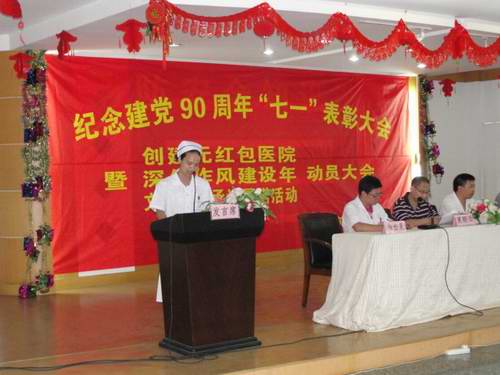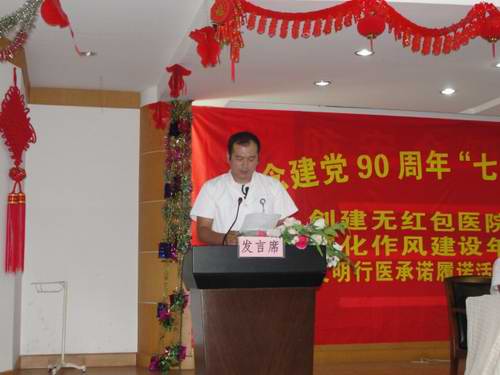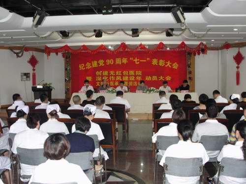 6月29日下午,丽水市二院隆重召开纪念建党90周年“七一”表彰大会暨创建无红包医院、深化作风建设年、文明行医承诺履诺、依法执业守护健康活动(简称四项活动)动员大会,院领导班子、全体党员及中层干部参加会议。
