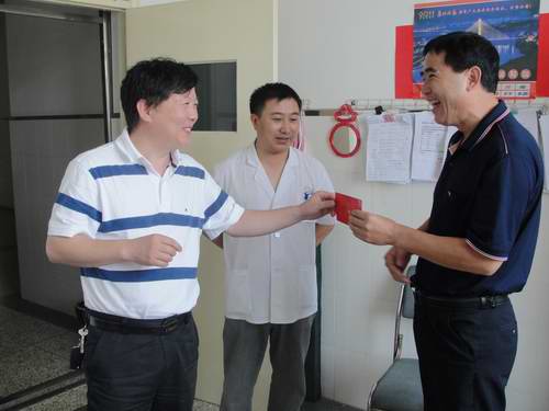 “八一”建军节上午,丽水市第二人民医院院长王东波、书记吴绍长亲切慰问了本院的退伍军人职工,给他们送去党组织的关怀以及节日的问候,并给每人送上慰问金。受慰问的退伍军人们感谢医院、党组织的关怀,表示要发挥部队的光荣传统,勤奋工作,以实际行动为医院发展做出新的贡献。