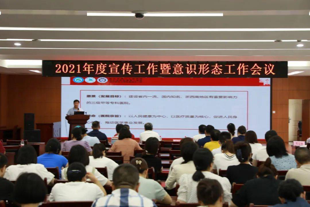 5月12日下午,丽水市第二人民医院2021年度宣传工作暨意识形态工作会议在行政楼五楼多功能厅召开。会议表彰了2020 年度最美患者(家属),总结了2020 年度医院的宣传与意识形态工作情况,研究部署当前和下阶段工作任务。
