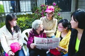 浙江在线05月07日讯 莲都区白云街道大学生村官爱心服务团的姑娘们在给后庆社区钟楼新村空巢老人范岳云读完4月16日的《丽水日报》上的新闻后,就报纸上报道的丽水市“市树”、“市花”候选品种简介中介绍的“市花”展开了激烈的争论,在争论中气氛既尖锐又融洽,不时传出阵阵欢笑声。