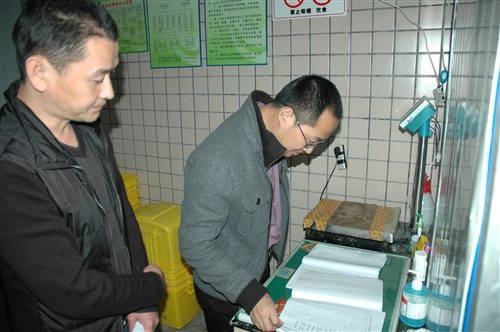 检查组还到医院的医疗废物处理点、污水处理站、食堂等区域作了实地检查。
