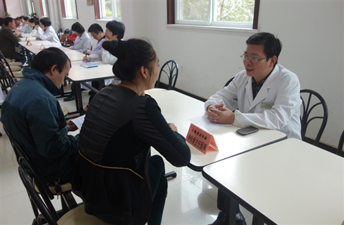 在心理咨询台前,我院心理咨询专家徐松泉主