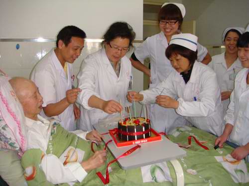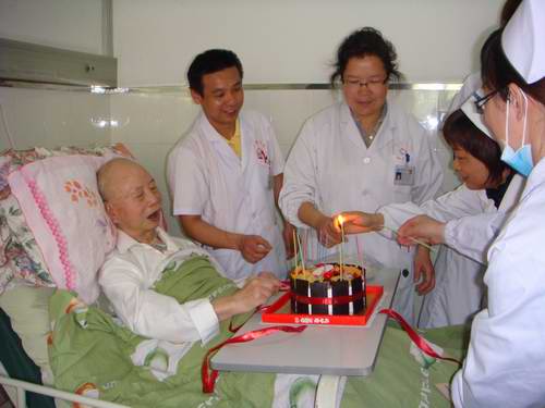 经过多方考察,2006年老人入住你院“老年病房八病区”。六年来,虽然无法根治疾病,但是却有了明显的变化:老人的病情得到了有效控制,老人的脸上时常有了笑容。这些变化,令我们欣慰的同时也充满感激,因为我们知道,这一切变化,均来自于老人身边的医护人员:是以吕医师为主的医治团队用精湛的医术减缓了老人病情的发展,是新老护士长引领的护理人员的精心护理减轻了老人的身心痛苦!更令我们感动的是今年4月28日,在这个属于我们家庭的特殊日子,却被“老年病房八病区”里的医务人员牢记在心——这天下午,老人的主治医师、护理人员及其病区领导为老人送来了蛋糕,并与我们一起唱响生日之歌——他们把最真诚的祝福送给了这位与他们毫无血缘关系的八十周岁病患老人。
