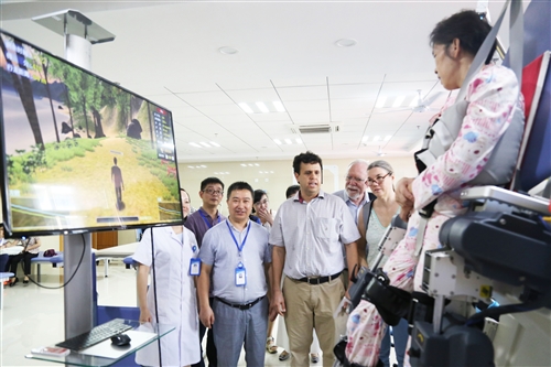 今日,巴西生物医学工程学会主席Adriano 教授一行来我院访问交流。 医院院长吴绍长陪同Adriano主席、Muhlen副主席、Germano康复师一行依次参观了我院康复诊疗中心的运动治疗室、牵引室、针灸室、艾灸室、推拿室、中药熏蒸室、蜡疗室、儿童康复治疗室、吞咽治疗室、物理因子治疗室等。 在参观过程中,康复中心主任周敏亚详细介绍了各治疗方式针对的人群及特色,各先进康复设备的治疗原理和应用范围;Adriano一行盛赞我院“中医康复和西医康复相结合、躯体康复和心理康复相结合”的新型康复治疗模式及先进的康复设备,特别是我院技术一流的康复团队,“That’s very good !”并表示这在他们国家是看不到的,很欣喜看到中国将相应的技术运用到临床上,为病人服务。 随后在交流会上,吴院长向来宾介绍了医院的基本情况及我院“以脑科老年科为主,多科协调发展”的办院理念,和“3851特色护理模式”、“3232惠民政策”等亮点工作。 图:林鸣笛 审核:邓丽云 文/编辑:马志春