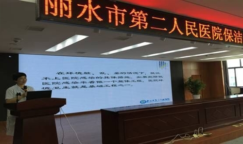 保洁工作是医院从事医疗护理等诊疗活动中不可缺少的组成部分,为医疗质量安全、病人康复、提供整洁、舒适的环境卫生,2017年6月2日下午,院感科潘科长为全院保洁员开展医院感染相关知识培训。 培训通过多媒体课件,用浅显易懂的语言,结合形象的幻灯图片对保洁人员进行了认真细致的讲解。内容包括保洁工作中存在的问题、我院对保洁工作的具体要求;清洁、消毒的基本知识;清洁消毒的程序和方法;医疗废弃物管理的法律、法规、收集、分类、运送及正确处置方式;个人防护与手卫生;职业暴露的处理措施;消毒液的配置与正确应用等。 通过本次培训,提高保洁员对院感防控意识和职业防护安全意识,了解并应用清洁与消毒的基本知识、基本技能和自我防护方法,对提高医院保洁工作的质量和有效避免院内交叉感染的发生,保障病人的医疗安全将会起到积极的推动作用。