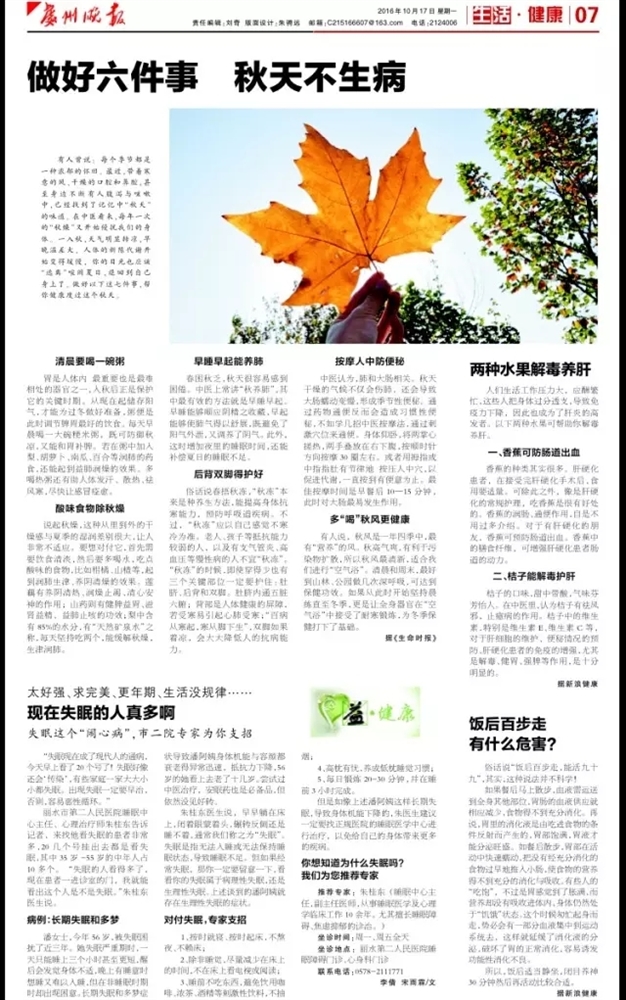 2369729《处州晚报》第7版刊登《失眠这个“闹心病”,市二院专家为你支招》