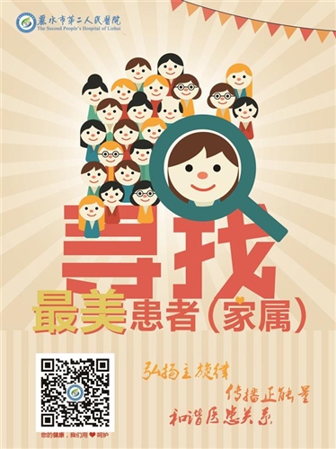 为深入践行社会主义核心价值观,大力弘扬中华民族传统美德,近日,丽水市第二人民医院在全院范围内积极开展“寻找最美患者(家属)”活动。 近年来,医疗战线不断涌现“最美医生”、“最美护士”,作为医疗服务的主体,患者(家属)的身上也有诸多闪光点值得去发掘、去尊敬。为弘扬主旋律,传播正能量,和谐医患关系,丽水二院决定在全院范围开展“寻找最美患者(家属)”活动。 本次活动评选范围为2015年1月1日至2016年12月31日期间到该院就诊的门诊、住院患者或家属。评选标准包括遵从医嘱,乐观坚强,积极配合医务人员检查治疗;尊重医务人员的劳动及人格尊严,个人素养良好;遵守就医诊疗秩序,不影响他人治疗;在医疗活动中作出表率或弘扬正能量等六大方面。活动设动员阶段、推荐人选审核宣传阶段、评选表彰阶段等,对科室或个人推荐的最美患者(家属)事迹材料经过活动领导小组审核后,将通过医院院报、网站、微信公众号等载体对先进典型事迹进行宣传报道,特别突出者,推荐至相关市级媒体进行广泛宣传,以切实提升“最美患者(家属)”的社会美誉度,传播正能量。
