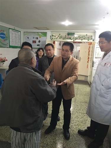 3月8日,省教育厅校安处潘伟川处长、省环保厅执法稽查总队应急调查室陈庆俊主任一行莅临丽水市二院就平安综治—严重精神障碍患者救治救助工作开展考核抽查,丽水市卫计委赖信强副主任、丽水市社管综治办叶建平副主任、丽水市二院吴绍长院长等陪同检查。 检查以听取汇报、查阅资料台账和现场检查三结合。在听取2015年丽水市精神病人肇事肇祸、严重精神障碍患者救治救助工作情况汇报后,检查组还详细查阅相关台账资料,并实地查看丽水市强制医疗点(专科男病区、专科女病区)、美沙酮门诊、巡特警驻勤点、保卫科值班室。 潘处长对我市严重精神障碍患者管理工作所取得的成效表示充分肯定。他表示,丽水市精神障碍三级防治网络建设较为健全,对精神病患者的管控工作责任到人、落实到户,做的比较扎实。同时,他对医院在平安综治、基层精防工作所取得的成果给予高度评价,并就医院精神病患者分级诊疗、精防队伍人才建设、“3232”医保政策实施情况等方面展开深入交流沟通。 最后,潘处长对我市严重精神障碍患者管理工作提出两点意见:一是要加强对严重精神障碍患者群体的处置与管理,消除社会安全隐患,为G20会议顺利召开做好保障;二是要建立校园心理健康工作保障体系,健全高校及中小学的联动机制,做好青少年心理健康的守护神。