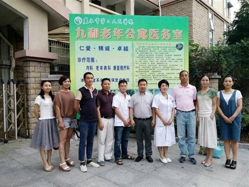9月1日,我院九和老年公寓医务室正式开业。吴绍长院长,赵龙友副院长及相关科室负责人参加了开业仪式。 九和老年公寓医务室是我院服务基层的重要窗口,为保证园区住户能得到专业、优质的医疗服务,医院为医务室配备的医护人员均是拥有多年临床经验,业务水平扎实的人员。医务室将为住户提供基础诊疗、用药指导、康复保健、就医转诊、资料建档等服务。根据住户的健康需求,医院还将推出健康讲座、心理咨询、义诊等活动,为老年朋友的健康保驾护航。