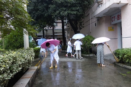 为迎接城市文明程度指数测评与国卫暗访,9月6日上午7:30我院组织全院干部职工开展环境卫生大扫除活动。 全体干部职工冒雨对医院的办公区域、公共区域及院围进行彻底清扫。特别是花坛、墙角等卫生难点和偏角,职工纷纷用火钳和扫把等清除落叶、垃圾。通过环境清扫,进一步改善院内外环境卫生,有力地推进我院创建文明城市工作深入开展。