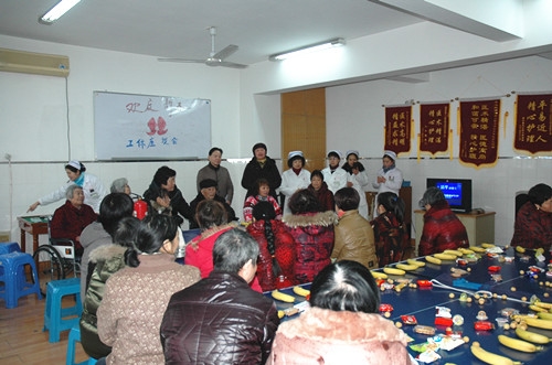 为顺利完成节前工作,确保全院度过一个平安、祥和的春节,护理部召开护工工休座谈会。梅映台副院长出席座谈会并发表了讲话。 座谈会上,梅副院长重点强调春节期间安全生产工作,要求各护工要提高了安全意识,严格遵守院内安全生产规章制度,增强安全防范技能。并结合“5S”活动开展情况,对护工们今后的工作提出具体要求。护工们纷纷表示愿为我院度过一个平安祥和的春节认真工作、保驾护航。