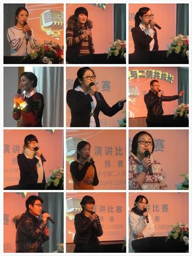 2014年12月9日晚,“我与二院共成长”主题演讲比赛预赛在我院六楼多功能厅拉开帷幕。来自各科室的25名选手参加此次预赛。 本次比赛经过前期的精心部署和各科室的推荐、初选,共有来自19个科室的25名选手参加预赛。比赛秉持公平公正的原则,严格按照比赛制度执行。赛场上,25名选手结合自身工作实际和生活体验,畅谈在医院工作中的深切体会,赞美身边默默付出的同事,感恩工作带来的成长,展望医院发展的美好未来……感情真挚,讲演生动,赢得了场内观众的阵阵掌声。 经过紧张而激烈地角逐,共有来自五病区、三病区、八病区等的12名选手脱颖而出,入围决赛。他们将在12月24日的决赛中带来更为精彩的表现。