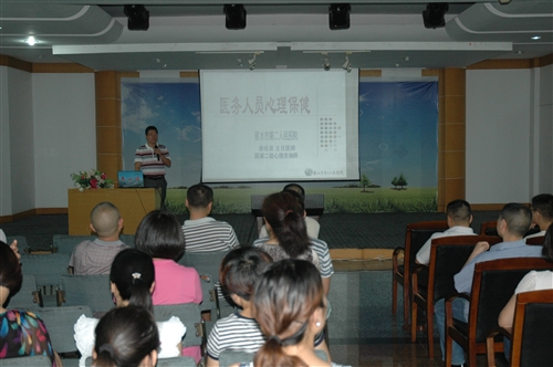 7月10日晚上6:30,院长助理徐松泉在六楼会议室为定点联系科室二病区、特检科、放射科及检验科作了题为《医务人员的心理保健》讲座。 在当今的医疗环境中,医务人员承受着来自医患关系、媒体以及社会公众等巨大压力。徐院针对医务人员存在的普遍心理问题,分别从压力产生的原因,存在的意义、危害以及如何应对压力等方面,结合实例展开阐述,对参会的医务人员进行一次健康的心理辅导,使医务人员在压力的面前如何应对及减轻压力得到答案。