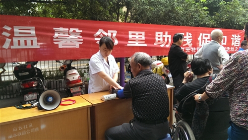 4月29日,阳光明媚,我院临床第二党支部联合团委、白云社区居委会,为白云社区的孤寡老人提供每月一次的志愿者上门义诊服务。 在白云社区居委会工作人员的陪同下,“益心”志愿者来到老人们的家中为他们测量血压,检查身体,讲解春季养生保健知识,叮嘱他们要清淡饮食,注意安全。志愿者们还陪着老人们聊天,了解他们生活上的困难,对他们进行心理疏导,并提供必要的帮助。在抗洪救灾模范周丽平的父母家中,志愿者们细心地为两位老人听诊,测血糖、血压,并指导他们合理用药。周丽平的母亲说:“我年纪大了上医院不方便,你们上门来帮我检查身体,真的很感谢你们。” 接受服务的老人中,大多年事已高,且子女常年不在身边,到医院看病十分困难。对于志愿者们的来访,老人们十分高兴,纷纷表示感谢。 近年来,我院一直把关心社区孤寡老人作为一项公益事业,为他们提供力所能及的帮助,今后,我院将继续发扬传统,定期为老人们上门义诊送健康。